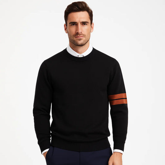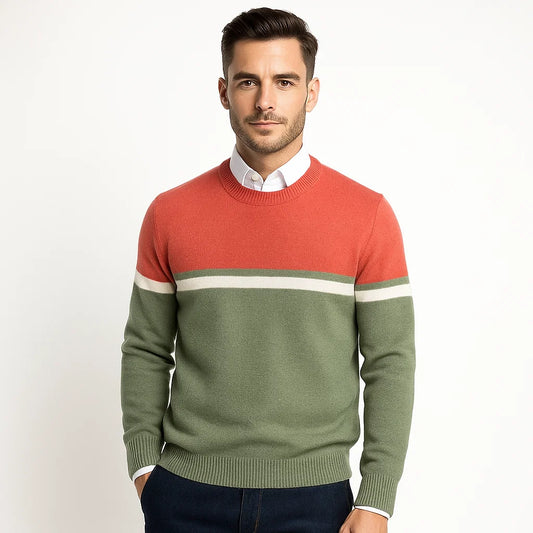 Men’s Wool Sweater O Neck Ribbed Hem Stripe Design