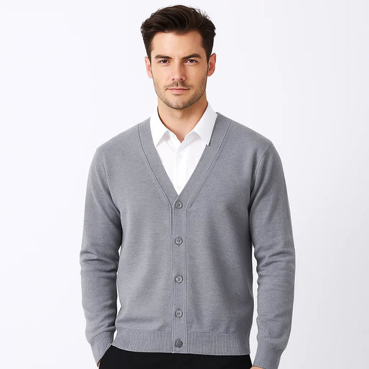 Men’s Fine Knit Cardigan Band Collar Button Front Patch Pockets