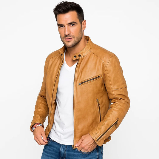 Men’s Slim Fit Leather Jacket Premium Zipper