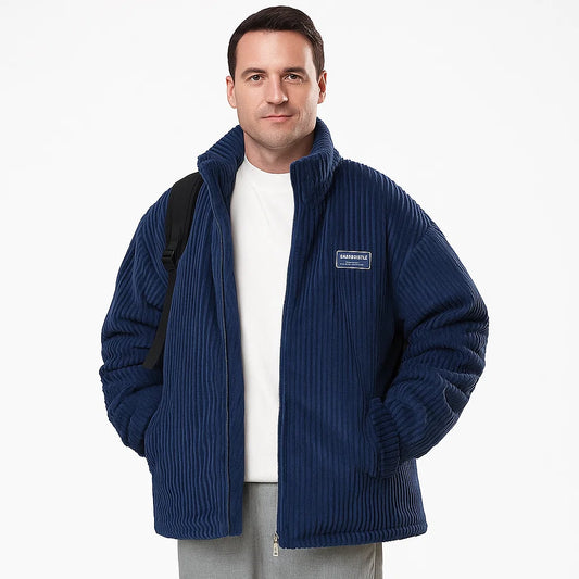 Men’s Padded Corduroy Jacket Relaxed Fit Stand Collar